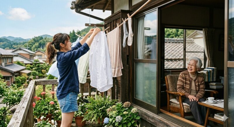 洗濯洗濯機又は手洗いによる洗濯、洗濯干し、取り入れ、収納など