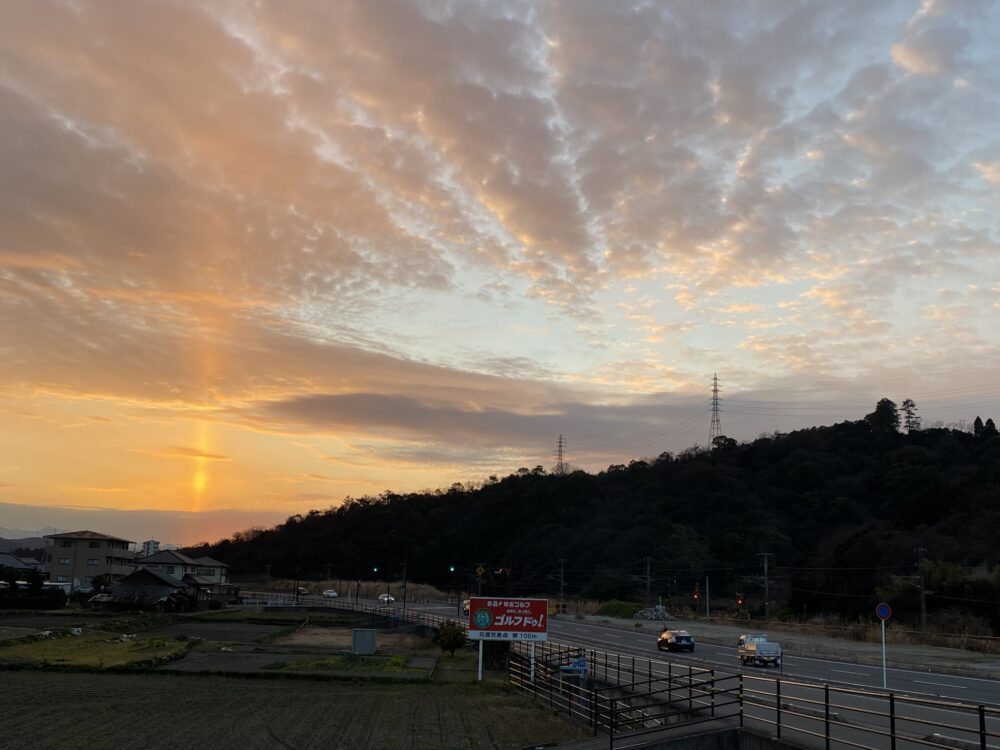 夕焼けは、空全体に広がった雲が太陽の光を反射・散乱することで、空一面が鮮やかな色に染まる現象だそうです。わたしは、雲がない快晴の空よりも雲がある方がドラマチックでしきです。雲の形や高さによっても、光の反射の仕方が変わる。色の出方も変わる。太陽が沈むにつれて、夕焼けの色は時間とともにオレンジから赤、そして紫へと微妙に変化していきます時間によって違った夕焼けになる。私はこの日もずっと投げめていました。